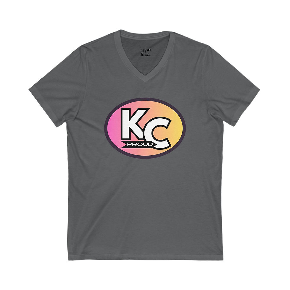 KC Proud (pink to yellow oval) Unisex V-Neck Tee, Kansas City PROUD