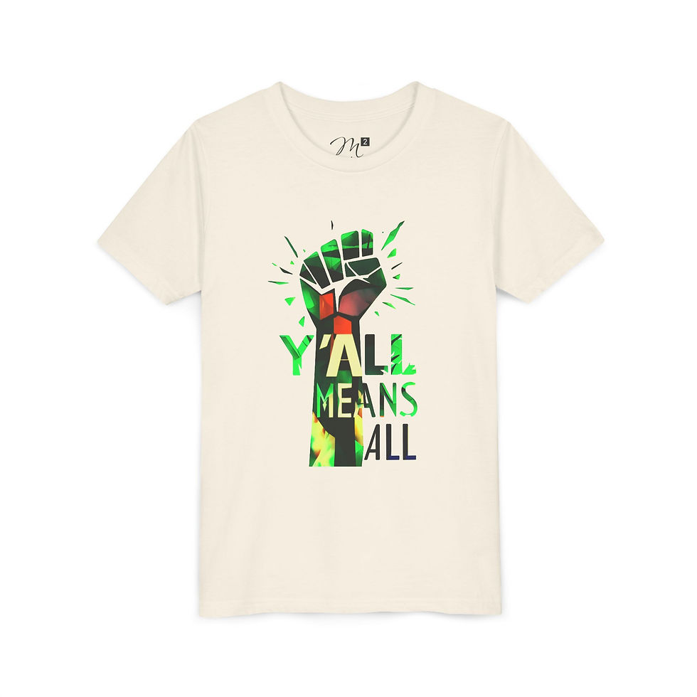 Y’all Means All Youth Short Sleeve T-Shirt, Green, Inclusive Apparel for Kids