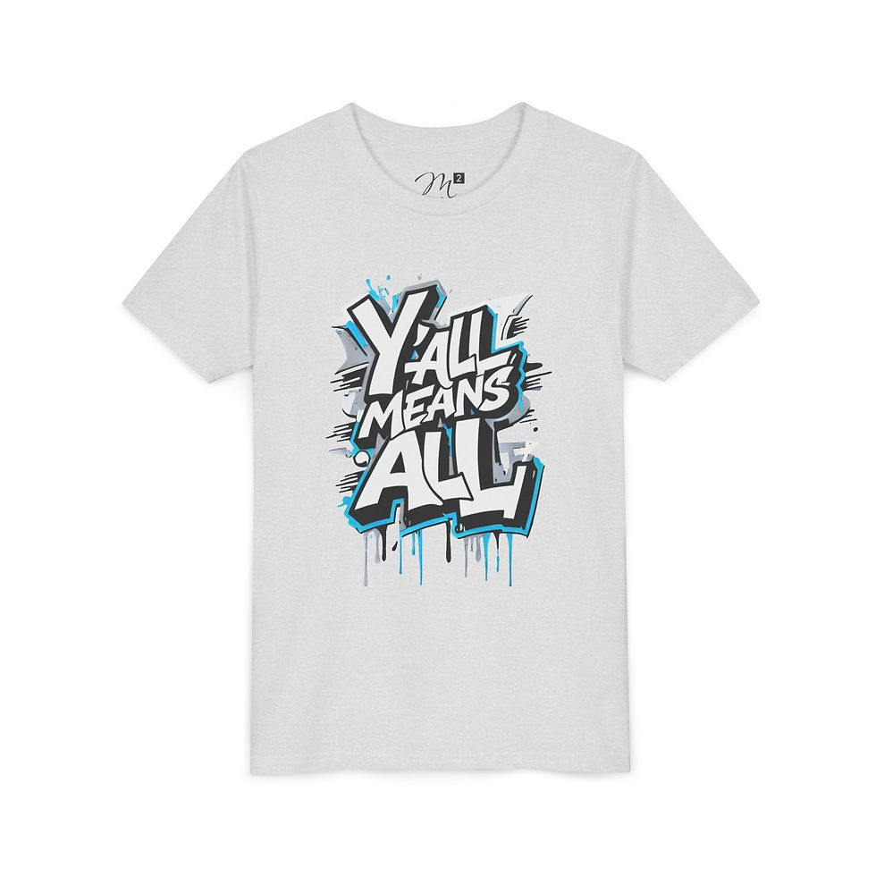 Y’all Means All Youth Short Sleeve T-Shirt, Blue, Inclusive Apparel for Kids