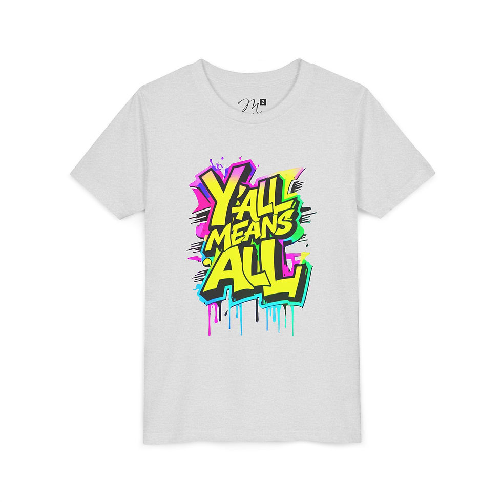 Born out of a response to global inequality and injustice, this collection conveys a powerful and necessary message: Everyone, regardless of their race, religion, gender, sexual orientation, abilities, socio-economic status, or nationality, deserves respect, kindness, and equality. A bold proclamation in support of equality and inclusivity, each piece in the "Y'all Means All" line serves as a beacon of #Unity, encouraging a world where differences are celebrated. Wearing a design from this collection serves as a pledge of #Solidarity with those who champion #Equality and #Inclusion. An embodiment of our shared humanity, the "Y'all Means All" design turns fashion into a statement, a conversation starter, and a [not-so]subtle reminder that inclusivity should be the norm, not the exception!